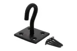 Robust Blue Spot Hook on Plate in 50 mm x 50 mm black powder coated steel, designed for weather resistance and outdoor durability.