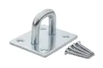 Durable zinc-plated hook on plate, ideal for gates, fences, and outdoor structures. Resistant to corrosion.