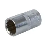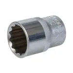 Professional 12-point socket, drop-forged from high-grade steel with nickel chrome plating for corrosion resistance. DIN 3124 compliant.