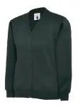 Soft & durable Uneek kids' cardigan (50% polyester, 50% cotton) with pockets, ribbed cuffs, and name tag - ideal for toddlers.