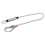 1.5m safety lanyard with alloy steel hook & karabiner. Polyester energy absorber for fall arrest. Compliant with EN362 & EN355.