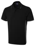 Stylish Uneek two-tone polo shirt in black/charcoal. Fade-resistant fabric with a comfortable unisex fit for any occasion.