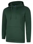 Soft 50/50 poly-cotton hooded jumper by Uneek with double hood, ribbed cuffs & earbud pocket. Comfort and durability in XL.