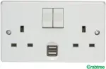 Double pole switched socket with 2 USB ports (5V/2.1A). BS1363 compliant, easy wiring, 35mm back box compatible.