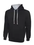 Uneek Contrast Hooded Sweatshirt, Black/Heather Grey, 4XL