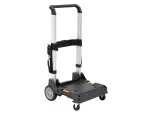 Robust DeWALT TSTAK trolley with 100kg capacity. Foldable, telescopic, and compatible with TSTAK toolboxes for easy transport.