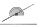 Úhloměrná deska je jemně dělena od 0° do 180° a zpět na 0° s rozlišením stupnice 0,5°, což umožňuje podrobná úhlová měření. Tento nástroj je nezbytný pro úkoly vyžadující vysokou přesnost jak v měření hloubek, tak úhlů.