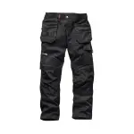Robuste Scruffs Trade Flex Arbeitshose in Schwarz (34S) mit Stretch, Kniepolstern & vielen Taschen. Ideal für Handwerker.