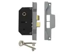 Hochwertiges UNION 2242 2-Hebel Einsteckschloss mit Falle (78,5 mm) in silberner Emaille. Ideal für Holztüren bis 54 mm Dicke.