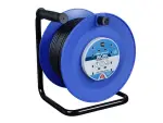 Robuste Masterplug Kabeltrommel mit 4 Steckdosen, 50m Kabellänge, thermischer Abschaltung und Reset-Knopf. Ideal für Haus & Garten.