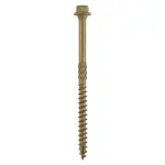 Ανθεκτική ξυλική βίδα Timco με εξάγωνη κεφαλή, πράσινη αντιδιαβρωτική επίστρωση, ιδανική για εξωτερικές κατασκευές, δάπεδα και φράχτες.