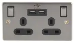 Πριζα PRO ELEC 2 θυρών με USB (13A/250V) σε ανοξείδωτο ατσάλι. Ιδανική για φόρτιση συσκευών USB σε σπίτια & γραφεία.