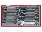 Το σετ στενών κλειδιών Teng Tools TT6010M προσφέρει μια συμπαγή και πολυτελή λύση για στενούς χώρους. Κάθε κλειδί διαθέτει ανοιχτό άκρο σε συνδυασμό με δακτυλιοειδές κεφάλι 12 σημείων, σε γωνία 15° για ευκολότερη πρόσβαση σε περιορισμένους χώρους. Κατασκευασμένα από χρωμοβαναδικό χάλυβα υψηλής ποιότητας με ανθεκτικό σατέν φινίρισμα, αυτά τα κλειδιά είναι φτιαγμένα για να διαρκούν.