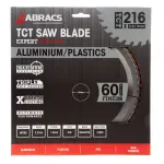Επαγγελματικός τριγωνικός δίσκος πριονιού Abracs για αλουμίνιο (216mm, 60 δόντια). Ιδανικός για πλαστικά, PVC και laminates.