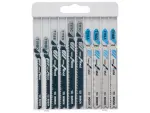 Bosch 10-piece jigsaw blade set for wood and metal cutting. Includes durable blades in convenient cassette case.