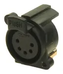 Professional 5-pin female XLR PCB panel socket with gold plated contacts for audio & lighting applications. UL94HB plastic shell.