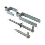 Secure driveway & field gates with Timco's galvanised double strap hinge set (450mm, 6mm steel). Includes barbed hooks & bolt holes for pins.