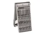 Bosch 25-piece screwdriver bit set with Phillips, Pozidriv, TORX, Hex & Slotted bits. Includes magnetic adaptor & flip-over case.
