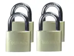 Keyed-alike DEFENDER padlock quad pack (40mm) with hardened steel shackle & brass body. Ideal for sheds, boxes & gates.