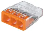 WAGO 2773-403 3 way push wire splice connector for solid & stranded wires. 450V, 32A, compact design.