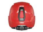 Red ABUS SCATOR-E safety helmet with non-vented ABS shell, ideal for low-voltage & construction work. EN 397 certified, 6-point harness & 382g weight.