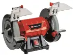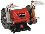 Einhell TC-BG 150 bench grinder with 150W power, dual-grinding wheels, and adjustable supports for sharpening and polishing.