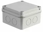 IP65-rated polystyrene junction box with DIN rail support. 119x119x64mm, impact-resistant construction.