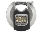Master Lock Excell Discus 4-digit combination padlock with boron carbide shackle & weather resistance. Ideal for gates, sheds & storage.