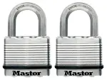 Secure with Master Lock's Excell padlock—50mm laminated steel, boron carbide shackle, & dual ball bearings.