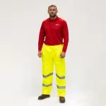 Timco waterproof hi-vis trousers with elasticated waist & reflective tape. Class 1 safety certified. X-Large size available.