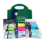 BS8599-1 compliant workplace first aid kit by Timco, ideal for high & low-risk environments. Includes burn dressings, plasters & gloves.