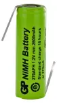 Eco-friendly GP NiMH rechargeable battery (2.6Ah, 1.2V) with opposing tags. Ideal for industrial and electronic devices.