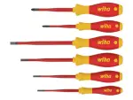 Premium chrome-plated needle nose pliers by Wiha, tested to 10,000 V AC. Ideal for electrical work, cutting wires, and precision tasks.