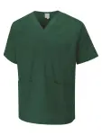 Durable unisex scrub tunic for healthcare professionals – bottle green, size L, 65% polyester, 35% cotton.