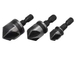Juego de 3 brocas avellanadoras BlueSpot Tools en acero al carbono. Ideal para taladros manuales y eléctricos.