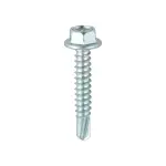 Tornillos Timco para metal-madera con punta de corte, arandela EPDM y zincado. Resistentes a la corrosión, ideales para exteriores.