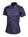 Camisa Oxford Pinpoint para mujer Uneek, azul medio, talla L. Tejido resistente a las arrugas, ajuste entallado y cómodo.