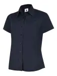 Camisa popelina de Uneek para mujer, manga corta. Corte entallado, fácil de cuidar. Ideal para oficina y ocasiones formales.