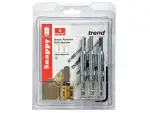 Juego de guías para brocas Trend con portabrocas rápido, incluye brocas HSS. Perfecto para bisagras y carpintería.