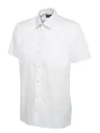 Camisa poplin de manga corta para hombre de Uneek, blanca y versátil. 65% poliéster, 35% algodón. Ideal para uso diario.