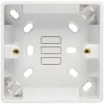 Caja de superficie VOLEX Blanco 1-Gang, PVC resistente, 29mm. Cumple BS5733. Ideal para instalaciones eléctricas.