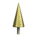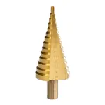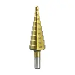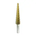 Broca escalonada Timco en acero HSS con recubrimiento de Nitruro de Titanio. Ideal para metalistería y bricolaje.