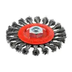 Cepillo para amoladora angular de 115mm en acero inoxidable. Ideal para limpieza agresiva de pintura, óxido y más.
