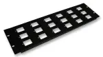 Plaque de fermeture PENN ELCOM pour panneaux de brassage, compatible avec trous type D. Idéale pour connecteurs audio et réseaux.
