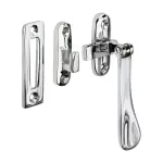 Fermoir de fenêtre Timco Fitch, laiton massif et chrome poli. Sécurisez vos fenêtres à guillotine en bois avec ce fermoir traditionnel et robuste.