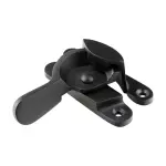 Fixateur de châssis Fitch de Timco en laiton massif noir mat, idéal pour fenêtres à châssis en bois intérieures. Installation par vis, durable et sécuritaire.