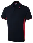 Polo bicolore Uneek en tissu réactif teint, idéal pour un look élégant et décontracté. Disponible en marine/rouge.