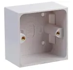 Boîtier de montage en surface blanc Pro Elec, 1 emplacement et 45mm de profondeur, ignifuge et conforme BS5733. Idéal pour câblages.