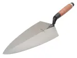 Truelle à briques Marshalltown modèle Philadelphie en acier haute teneur en carbone avec poignée DuraSoft pour une prise confortable.