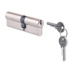 Barillet européen double Timco (80mm) avec mécanisme 6 goupilles. Construction laiton nickelé, livré avec 3 clés. Protection résidentielle et commerciale.
